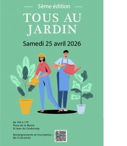 Tous au jardin revient pour sa 5e édition ! Le 25 avril 2026, de 10h à 17h, la place de la mairie se transforme en…