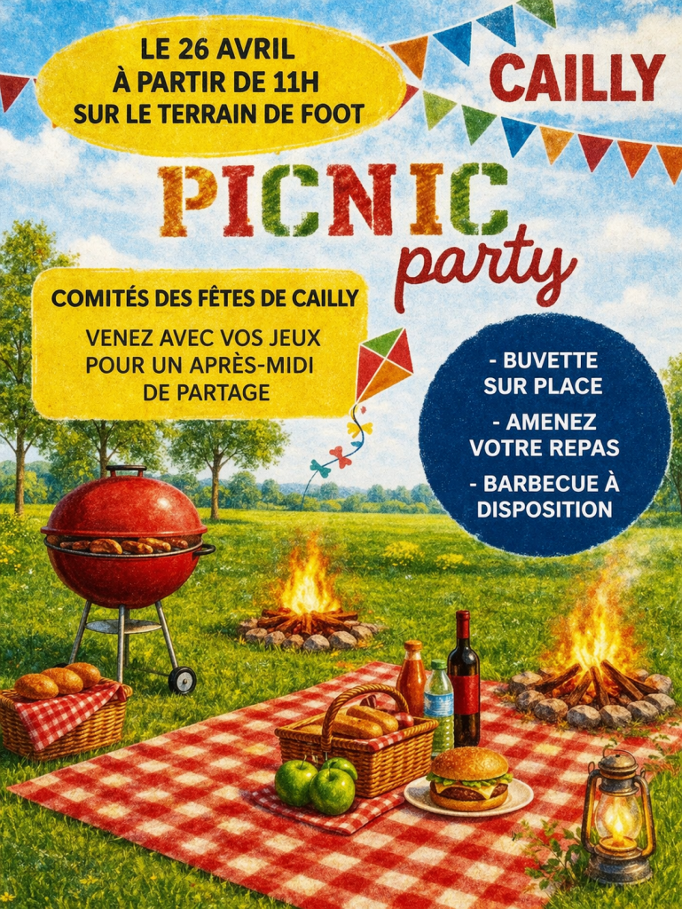 Le comité des fêtes de Cailly organise une grande picnic party sur le terrain de foot le dimanche 26 avril à partir de 11h.